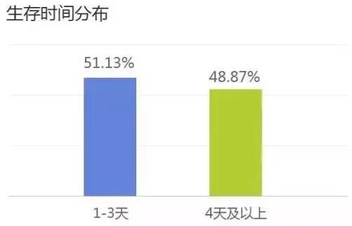 2016年1月,第三方的大数据平台“数说故事”联合H5的应用平台MAKA发布了《2015年度H5洞察报告》,其中企业发布的商业H5平均每篇PV数和UV数分别为954和693,而且平均每篇H5被阅读的时间是380s(约6分钟),能被分享41次。一篇H5的平均生存时间为436,639s,约为5天。从PV分布图中可以看到,大部分H5页面的PV数不高,PV集中在0-200的H5接近5成,90%的H5页面PV小于1,500。