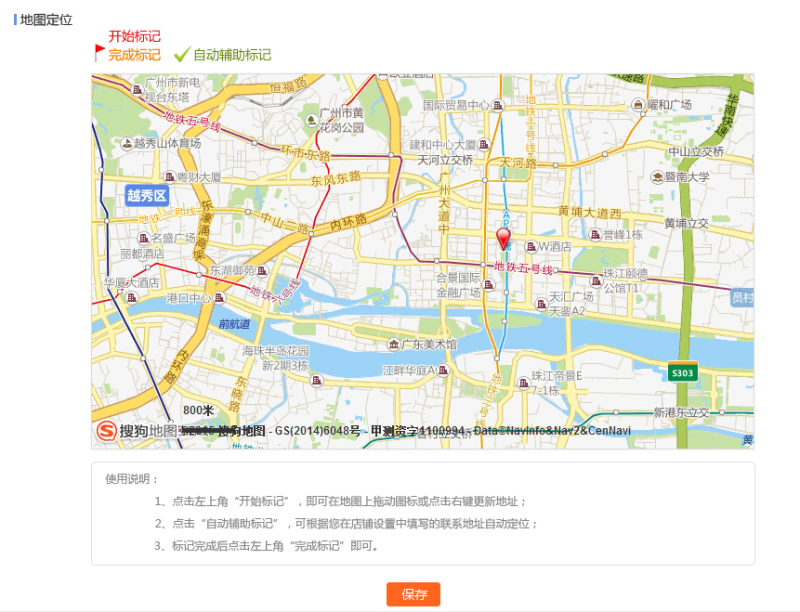 产品看过之后表示这不是她想要的结果,我只是想在自动定位定不准的情况下可以手动进行修改,打开页面时已经存在定位为了防止误操作是不能修改的,然后如果想修改定位可以选择“手动标记”。这中间还有其他沟通的环节,然后我输出了下图: