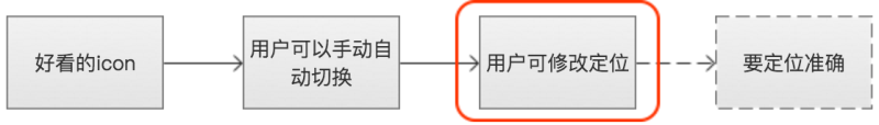 时手动自动切换”—>“用户可以修改自动定位不准确的位置”。其实最后还有一个最终的需求“我要后台定位准确”。前三个都是产品在这次任务中向我表