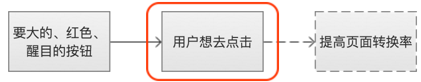 钮”。细细分析一下,把这个需求按照上面例子的格式写出来便是“我要一个大的、红色的、醒目的按钮”—>“用户可以有欲望去点击”—>“我只