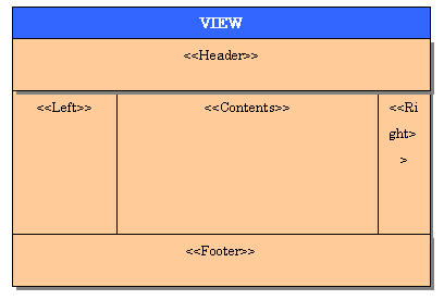 图1,页面的排版可以由页眉(Header),左(Left),中(Contents),右(Right),页脚(Footer)几部分构成,每一部分都可以作为一个子视图,可以被动态包含。