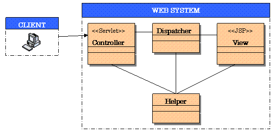 负责view的管理以及页面导航(提供一个页面导航机制以决定下一个将要显示的视图页面),它把来自客户端的请求发送给View;有时也通过Helper类调用业务逻辑处理。Dispatcher可以被封装为一个Controller(参考Front