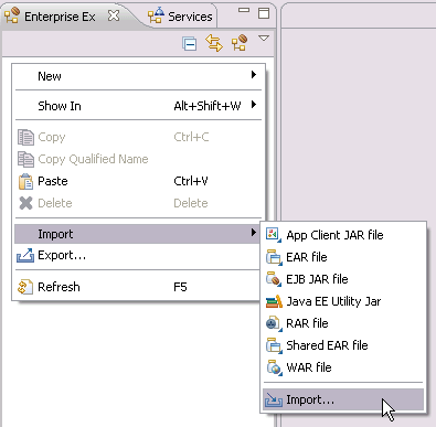 中没有安装它,因此必须先导入它。然后,可以将样例应用程序 EAR 文件导入 IBM Rational Application