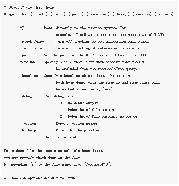 jmap工具来生成堆转储,我们应该使用-dump参数,下面jhat工具可以使用的参数列表: