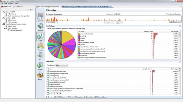 作为JVM融合战略的一部分,主要用来统一HotSpot、JRockit VMs。目前,JRockit Mission Control在标准版Java SE中已经可以使用。Java Mission Control(JMC)与Java Flight Recorder一起工作,适用于HotSpot JVM,用来记录核心数据和事件。它是一个调优工具,并且适用于Oracle JDK。一旦出现问题,这些数据就可以用来分析。