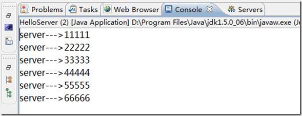 运行HelloServer.java的main方法,console窗口打印的信息如下: