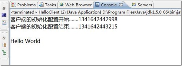运行HelloClient.java的main方法,console窗口打印的信息如下