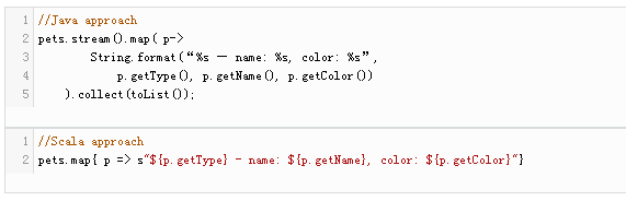 通过比较 Java 和 Scala 中的一些共同的操作方法 ——filter、group、map 和 find;很明显 Scala 的方法比 Java 更简洁。你更喜欢哪一个呢?哪一个的可读性更强?