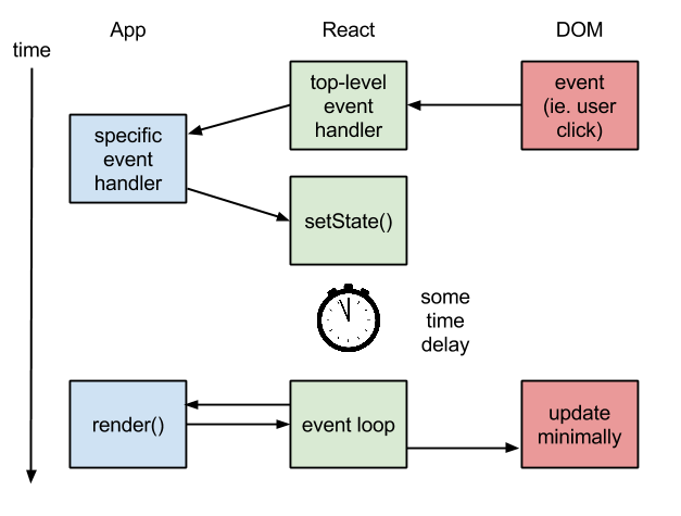 这样就使得 React 能够等到事件循环的结尾, 而在之前完全不用操作真实的 DOM.