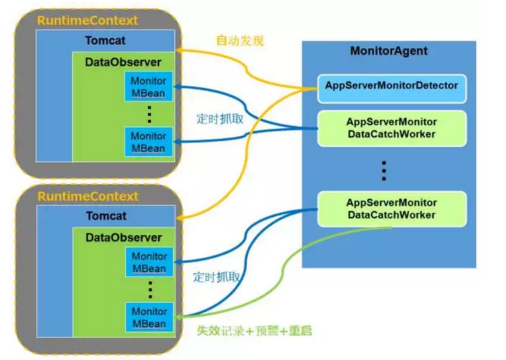 监控代理程序每隔5秒(可调节),采集Mbean中的画像和性能数据