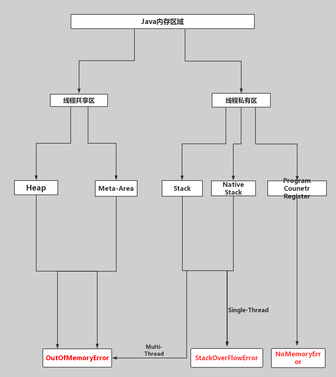 Stack中的入栈出栈的过程!这也就能回答开头我们看到的那个问题了,很简单错误在单线程情况下肯定是StackOverFlowError,多线程下OutOfMemoryError(上图已经写得很清楚了)