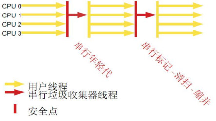 串行收集:串行收集使用单线程处理所有垃圾回收工作,因为无需多线程交互,实现容易,而且效率比较高。但是,其局限性也比较明显,即无法使用多处理器的优势,所以此收集适合单处理器机器。当然,此收集器也可以用在小数据量(100M左右)情况下的多处理器机器上。