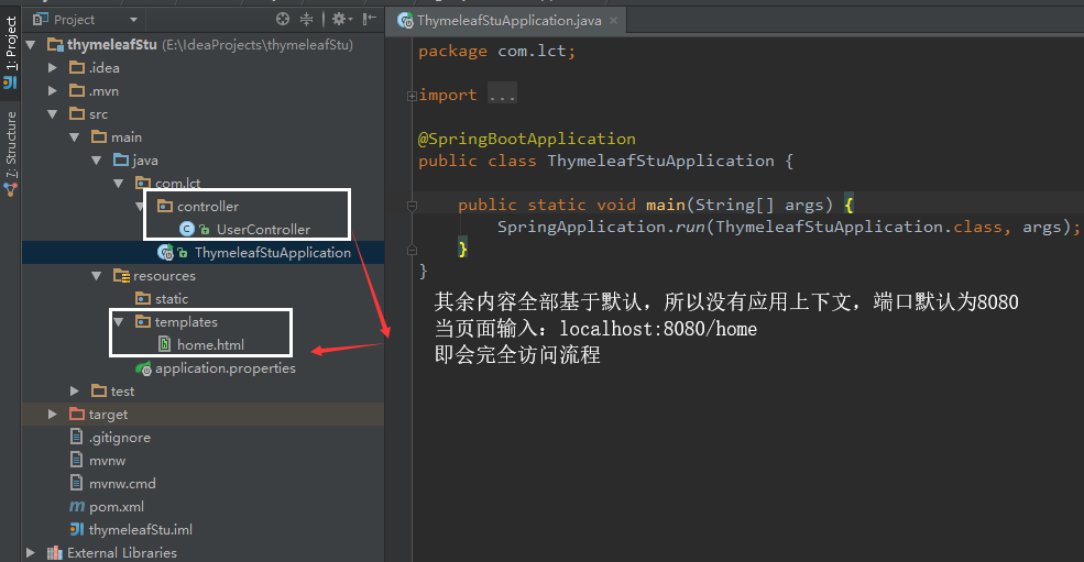* 所以下面会跳转到 classpath:/templates/home.html 页面