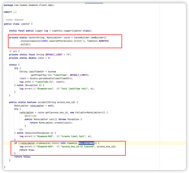 在一分钟的时间窗口内,限制单个diamond配置的访问次数低于-DlimitTime配置,默认配置为5,对于超过限制的配置会进入等待状态。