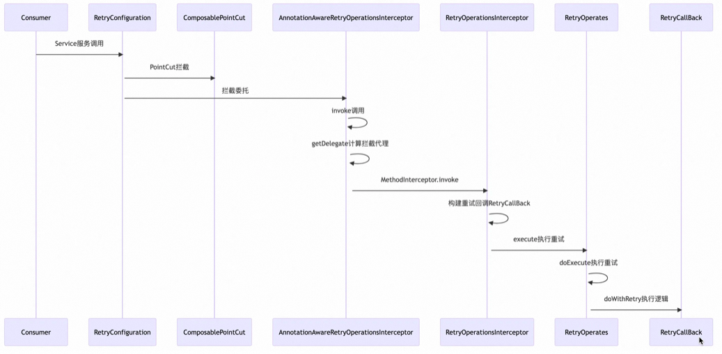 PointCut 和 Advice。当发生方法调用时,Spring 会委托拦截器 RetryOperationsInterceptor