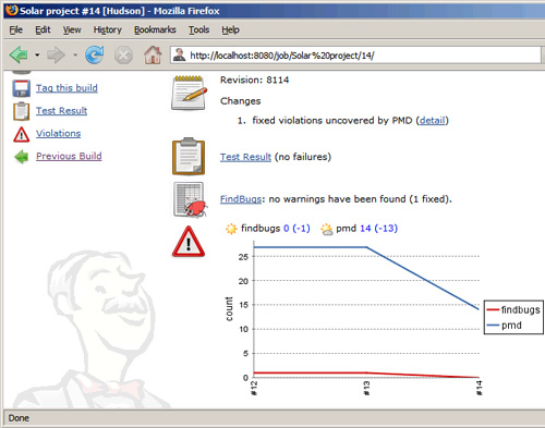 Builds 13 和 14 之间减少了 13 个 PMD 违规。不错吧?代码已经越来越好了!