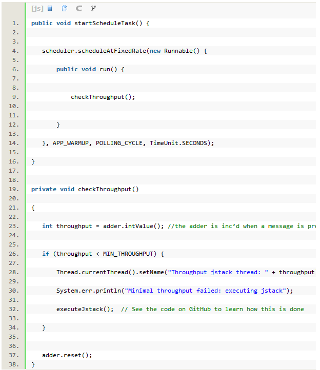 不过很多时候Jstack是用在回顾的环节,如果错误已经发生,它反馈的可能是过时的信息。因此如何更主动地使用Jstack是关键所在。例如,设置一个吞吐量阀值然后在该值下降时启动jstack。