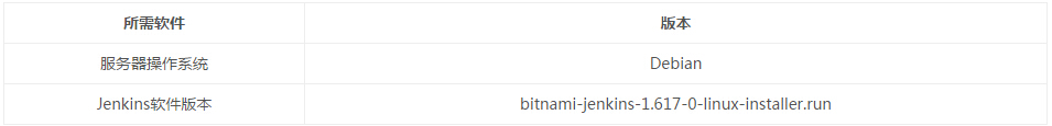 如果对在Linux下安装有恐惧症的,BitNami提供了jenkins的一键安装程序,简单、易用、方便,可在https://bitnami.com/stack/jenkins中下载,windows、linux、OS X平台都有提供。我是在linux环境下安装的Jenkins,环境如下:
