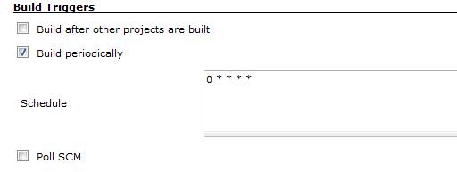 根据开发需要,假设每一个小时我们需要重新构建一次。选择 Build periodically,在 Schedule