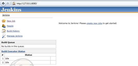 启动 Jenkins 后,会有一个后台进程在命令行模式下运行。此时在浏览器地址栏中打开 http://localhost:8080