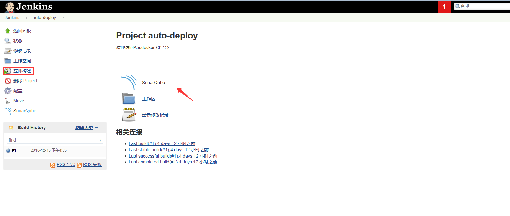 构建完成后,我们发现这里的SonarQube可以点击,我们点击SonarQube就会链接到192.168.56.11:9000