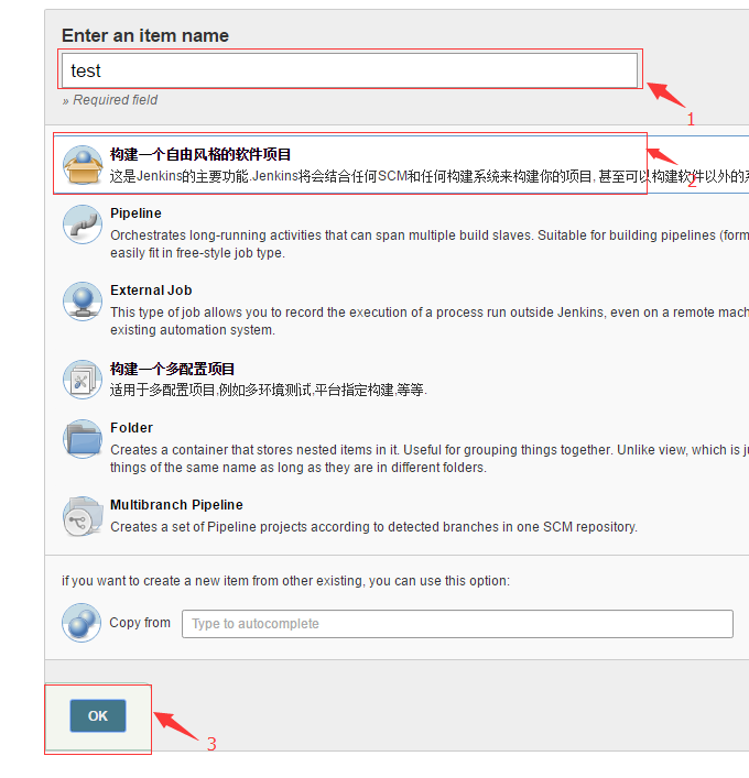 然后出现(暂时选择构建自由风格的软件项目)