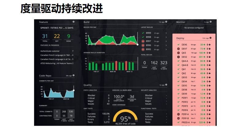 这是CapitalOne开源的可视化度量工具平台,提供丰富的接口,可以跟现有的工具做集成,通过可视化的大屏幕能看到代码提交的效率、质量,推荐大家可以回去试用。