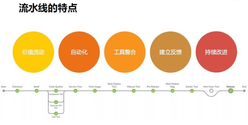 第一,打通端到端。如果流水线在设计的时候只是停留在开发环节,这些流水线都不完整。设计流水线的时候一定要从代码提交一直到线上,整个环节都是价值流动的环节,流水线都要覆盖到这些环节里。