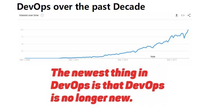 正因为业务越来越复杂,软件交付也越发成为企业价值交付的瓶颈,于是DevOps应运而生,从Google趋势来看,DevOps诞生将近十年,尤其最近五年,DevOps的走势是陡然上升的。