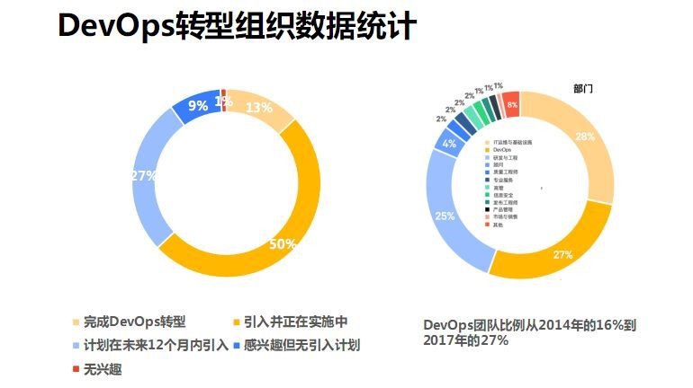 而从左边的数据可以看到,50%的企业正在引入并实施DevOps,超过80%的企业已经有相关计划,所以如果现在还不做的话,你就是那1%。