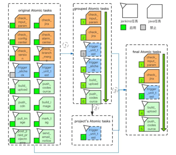 3、将原子任务根据执行载体分为两种,Java类和Jenkins类,直接用Java程序执行的任务为Java类,需要Jenkins执行的任务为Jenkins类。