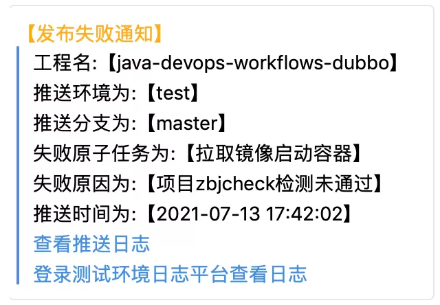 值得注意的是,当推送失败后,流水线系统也会通知到用户,进行对应问题的排查。
