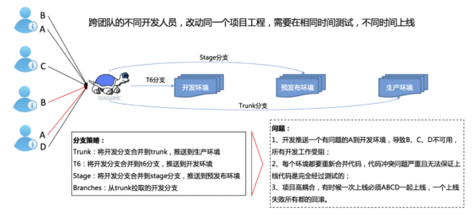集成过程中未对代码进行审查,错误代码发布到测试环境后,会影响依赖方的测试。