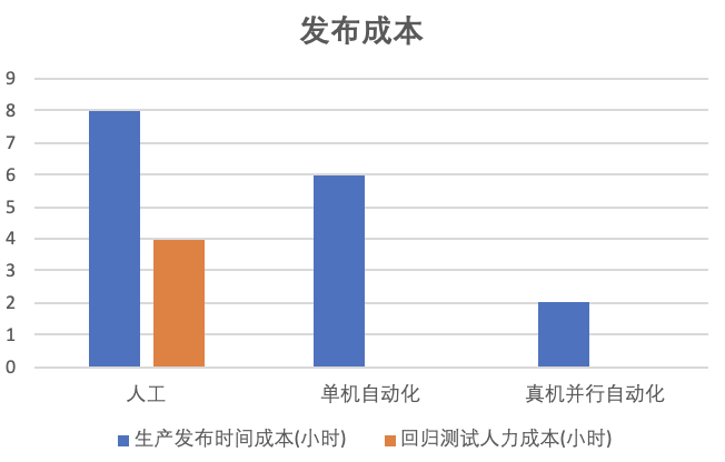 发布成本的降低也十分明显,最初每次发布需要投入1名测试人员手工回归,自动化测试替代人工测试后,回归测试实现了0人力投入;回归测试的时间成本也在不断的升级优化中一步步降低,在采用分布式执行UI自动化回归后发布准备的时间成本降到了2小时左右。