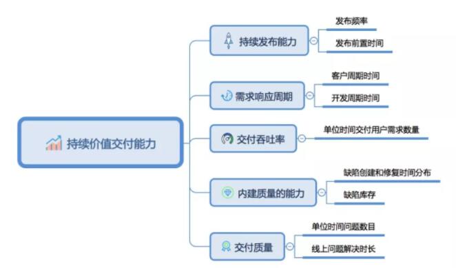 有效的度量体系应该围绕核心问题展开。在这里,这个根本问题就是团队的持续价值交付能力如何?我们将用五组指标来回答这一问题,它们分别是:
