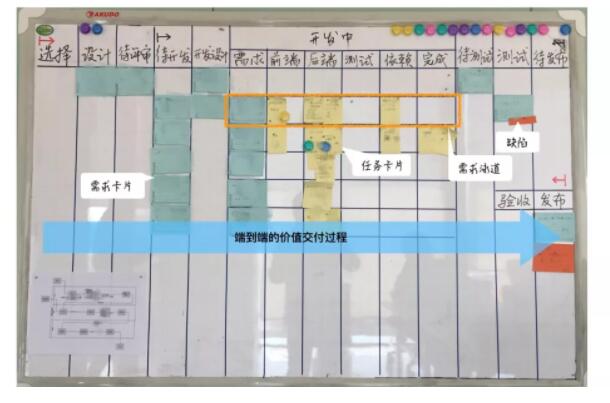 端到端可视化需求的流动过程,从需求被选择开始,直到发布结束。这让我们能即时看到问题,如:需求是否顺畅流动,是否发生了停滞和积压,是否有瓶颈。这就是所谓:光照亮了问题所在。