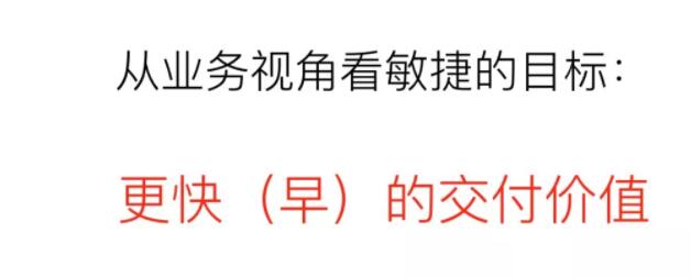 所以敏捷开发有第一个目标就是更快的交付价值,这里的快指的不是绝对速度,而是更早的交付。