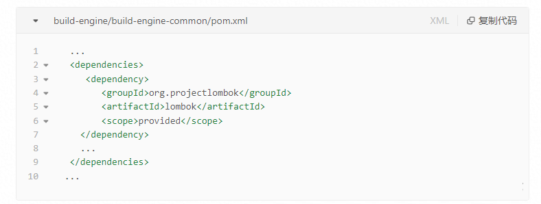 在子模块build-engine-api的pom.xml中,由于在父pom中配置了 dependencyManagement中依赖的spring-boot相关依赖的版本,因此在子模块的pom中,只需要在dependencies中直接声明依赖,确保了依赖版本的一致性。