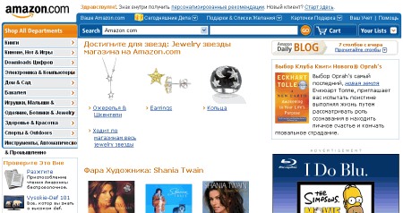 BabelFish in use: Amazon.com in Russian.