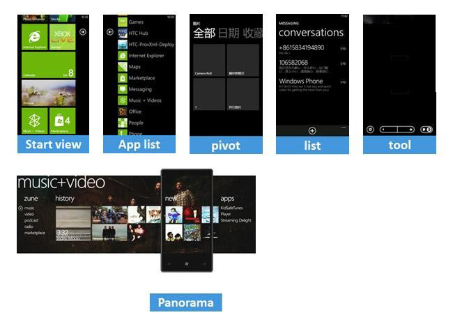 tiles”、”panorama”、”pivot”、”Hubs” 等等。