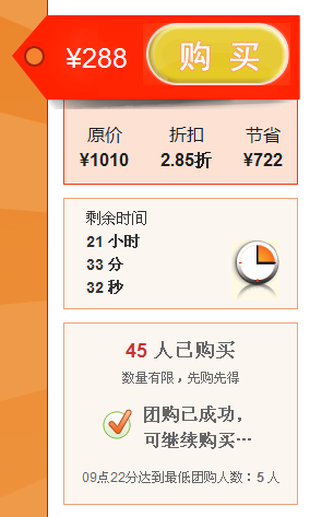 4.2 电子商务网站中,突出价格和价格对比。如下图中团购网站的首页。