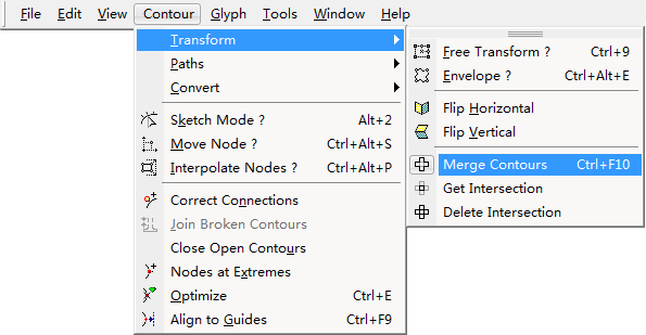 fontlab也可以处理简单的合并,组合图形的形式可以在菜单上设置,ai中不做阐述
