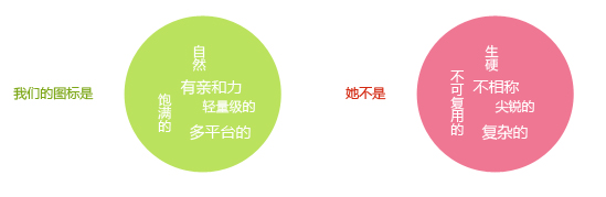 4、不需要花哨的图标。这是我们的图标风格所确定的,其中也是为了适应性,所以相对形状比较重要。
