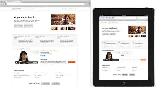 虽然 Skillshare 网站的主体文字略小,但它确实提供了点击区域大且易用的导航按钮和立即行动按钮,此外,内容区域周围也留有了足够空间。