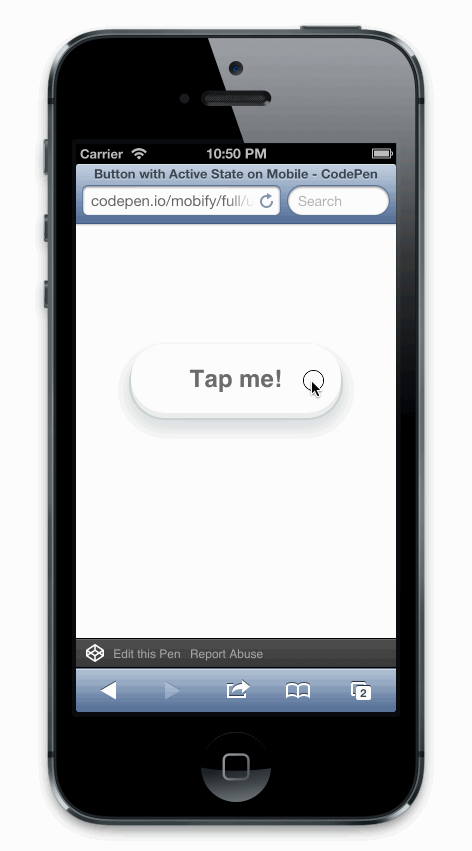 不幸的是,无论是iOS还是Android上的链接或者按钮被点击的时候都会忽略这个属性。为了使用这个active状态,你需要使用JavaScript给页面添加一个简单的事件: