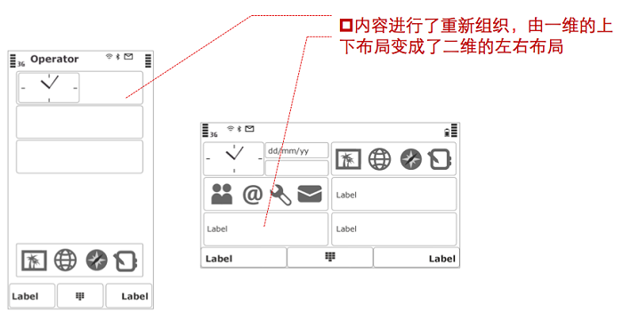 1) 系统状态信息栏拆分成两行,居屏幕上下