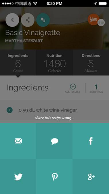 7.Metro风格的界面设计也能运用在APP的图标模块中,案例中将各种第三方分享平台的实心图标都用方块元素连接在一起,让原本单调的图标瞬间活跃了起来,给用户一种焕然一新的感觉。