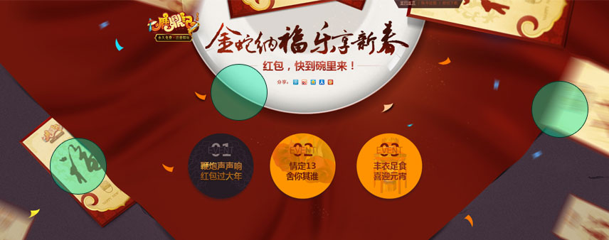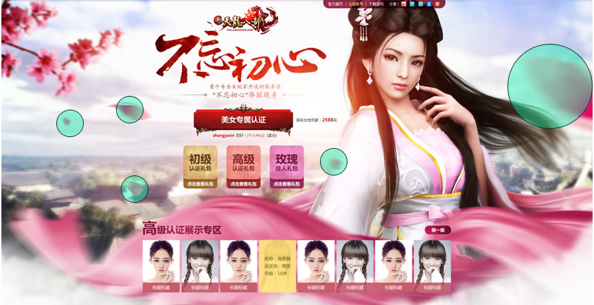 还有,在页面底部,设计师还做了一块面积不大的斜三角,与上面呼应这些都是细节的体现。在游戏网站中利用圆、方、三角打造网页框架的方法非常流行,想学习的同学来优设网搜腾讯美女设计师+空格+惊喜就可以看到咯。