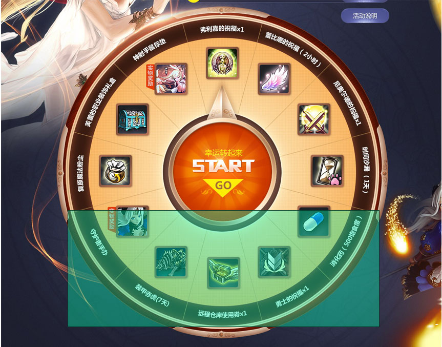 好了,不卖关子了。这个转盘的最好的细节处理的地方就在于奖品的名称那里,通常我们在处理这类圆形路径上写字的情况,都是直接画个圆形的路径,完了之后在路径上直接打字,再去调整文字之间的间距,这样呢势必会造成一个问题——会有至多一半的名称是倒着的。这样呢会给浏览者在阅读的时候造成一定的障碍,这里设计师正式考虑到了这一微小的细节,所以通过一定的方法使所有的名称相对于水平线而言都是偏正方向的,这样用户在阅读名称的时候就会很容易识别。