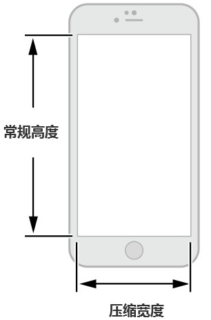 竖屏时,iPhone 6,iPhone 5 和iPhone 4S使用的是压缩宽度和常规高度。